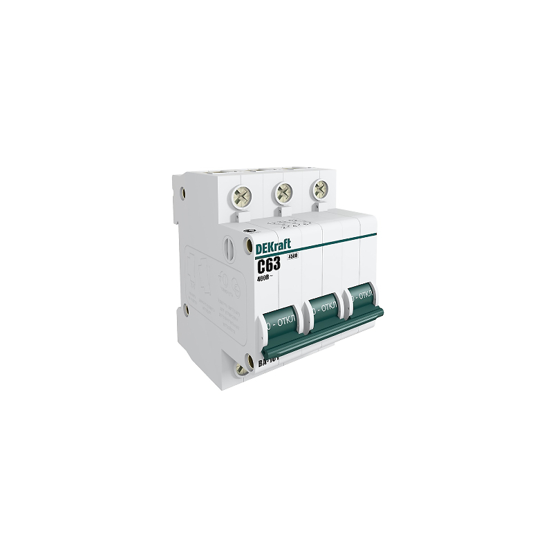 Автоматический выключатель серии ВА-101 DEKraft; 3P; номинальный ток 50 А; характеристика D; отключающая способность 4,5 кА. 5 монолитных заклепок повышают прочность корпуса аппарата. Сплошная лицевая панель обеспечивает безопасность эксплуатации аппарата. Боковые каналы охлаждения повышают стабильность работы при высоких температурах окружающей среды. Есть возможность установки дополнительных аксессуаров с левой стороны устройства. Аппарат на 100% совместим с корпусами DEKraft и Systeme Electric.