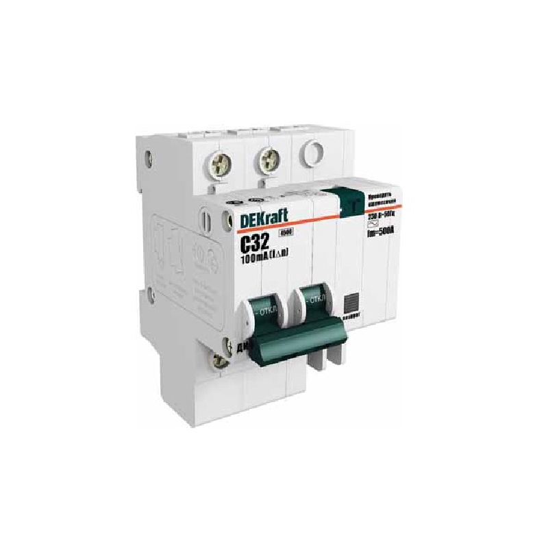 Автоматические выключатели дифференциального тока (дифавтомат, АВДТ) — серии Диф-101 DEKraft, совмещают сразу две функции: автоматического выключателя и УЗО. Защищают от короткого замыкания, перегрузки, возникновения утечки тока. По конструкции — это автоматический выключатель с присоединённым электронным блоком дифференциальной защиты. По принципу действия: левая часть устройства функционирует как автомат, правая — как УЗО, цепь разрывается вне зависимости от того какой из блоков сработал.