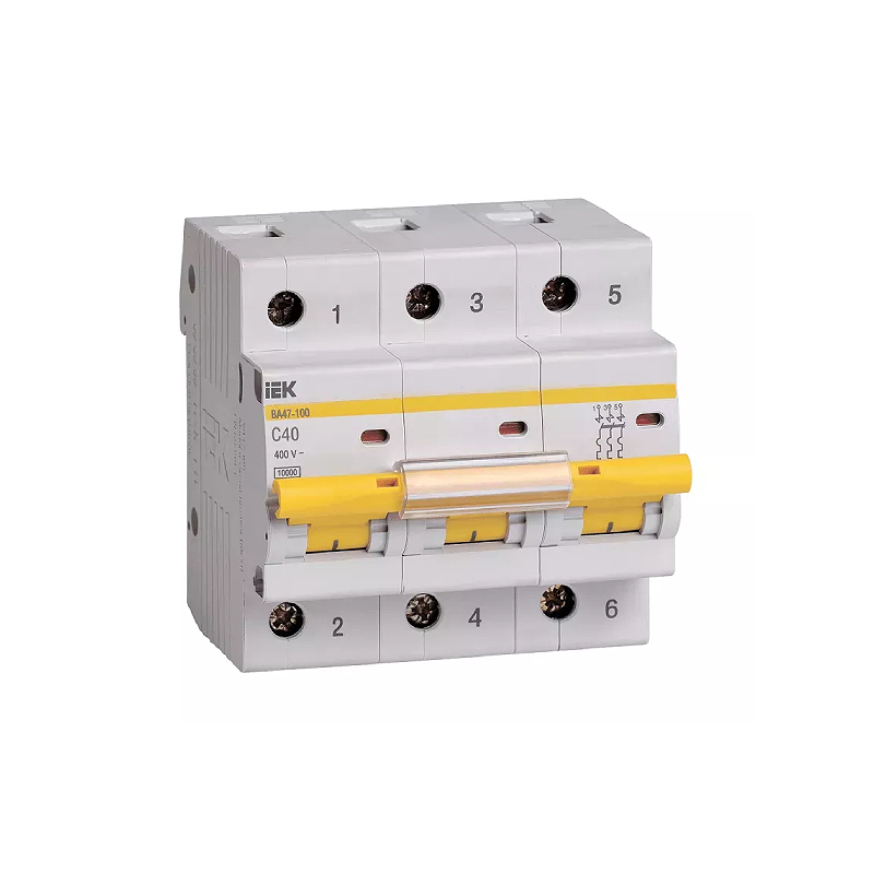 ВА47-100 -имеет два типа защиты от перегрузки и короткого замыкания, располагает усовершенствованной более широкой рукояткой выключателя с увеличенной площадью контакта, насечки на контактных зажимах, которые снижают тепловые потери и увеличивают механическую устойчивость соединения, а увеличенная коммутационная способность 10 кА позволяет устанавливать ВА47-100 в качестве вводных автоматических выключателей.