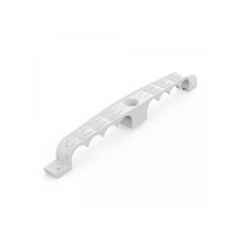 Держатель труб для прямого монтажа двусторонний на 8 мест d20 Промрукав — это специализированный крепеж, предназначенный для крепления гофрированных и гладких пластиковых труб диаметром 20 мм. Держатель труб разработан для прямого монтажа, что позволяет осуществлять крепление монтажными пистолетами по бетонным поверхностям, но возможен монтаж и классическим способом, используя дюбели и саморезы. С помощью двустороннего держателя труб можно одновременно смонтировать и закрепить до 8 труб. Данную продукцию можно использовать при прокладке линии внутри помещений или под навесом. При необходимости допускается фиксировать края держателя, в том числе монтажным пистолетом, для обеспечения максимально возможной надежности фиксации трубы.