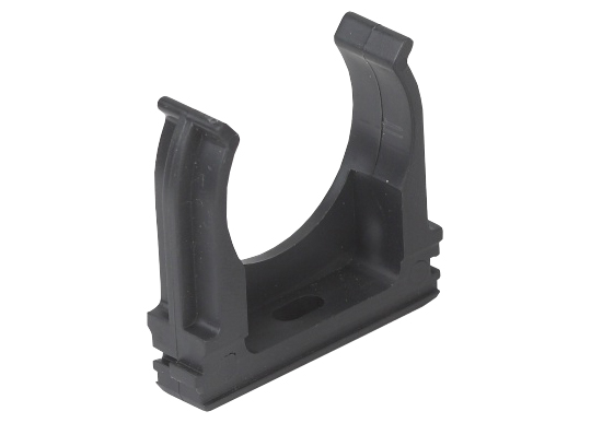 Предназначена для крепления гладких труб ПВХ или гофрированных труб одного диаметра к поверхности стен, потолков, полов или перегородок. Для монтажа предусмотрено технологическое отверстие под дюбель или саморез. Для удобства блочного монтажа состыковываются друг с другом с помощью специальных фиксаторов типа «ласточкин хвост».