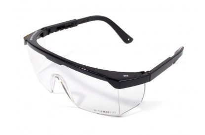 Очки с регулируемыми заушниками для защиты глаз от высокоскоростных частиц (низкоэнергетический удар на более 0,84 Дж), дополительная боковая защита и увеличенная защита сверху. Материал защитного стекла: бесцветный поликарбонат, устойчивый к экстремальным температурам от -5˚С до +55˚С.