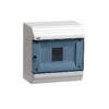 Пластиковый распределительный щит для настенного монтажа со степенью защиты IP41, предназначен для настенного монтажа в помещениях разного назначения и используется для установки модульных устройств на DIN-рейку. (
