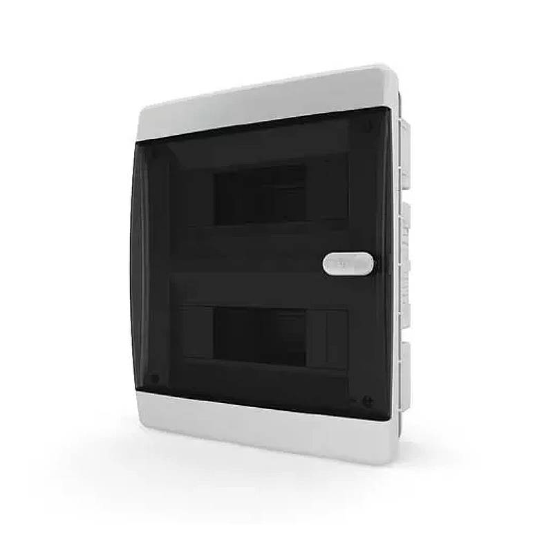 Встраиваемый пластиковый распределительный щит со степенью защиты IP41, предназначен для скрытого монтажа в помещениях разного назначения и используется для установки модульных устройств на DIN-рейку. (