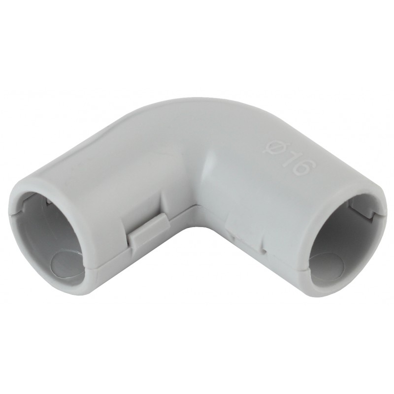 Угловой соединитель для жёстких и гофрированных труб ПНД, ПВХ. Применяется в случаях, когда требуется изменить направление трубопроводной трассы под углом 90°. Благодаря разборному корпусу, позволяет легко производить монтаж на трассу. Изготовлен из пластика (ПВХ).