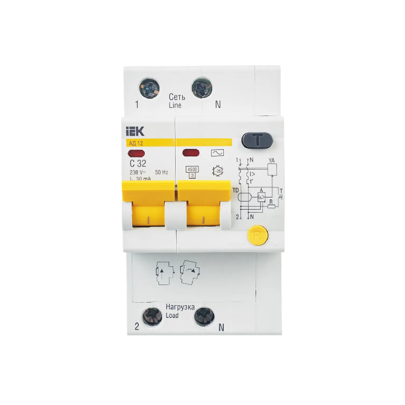 - Номинальный отключающий дифференциальный ток: 30мА