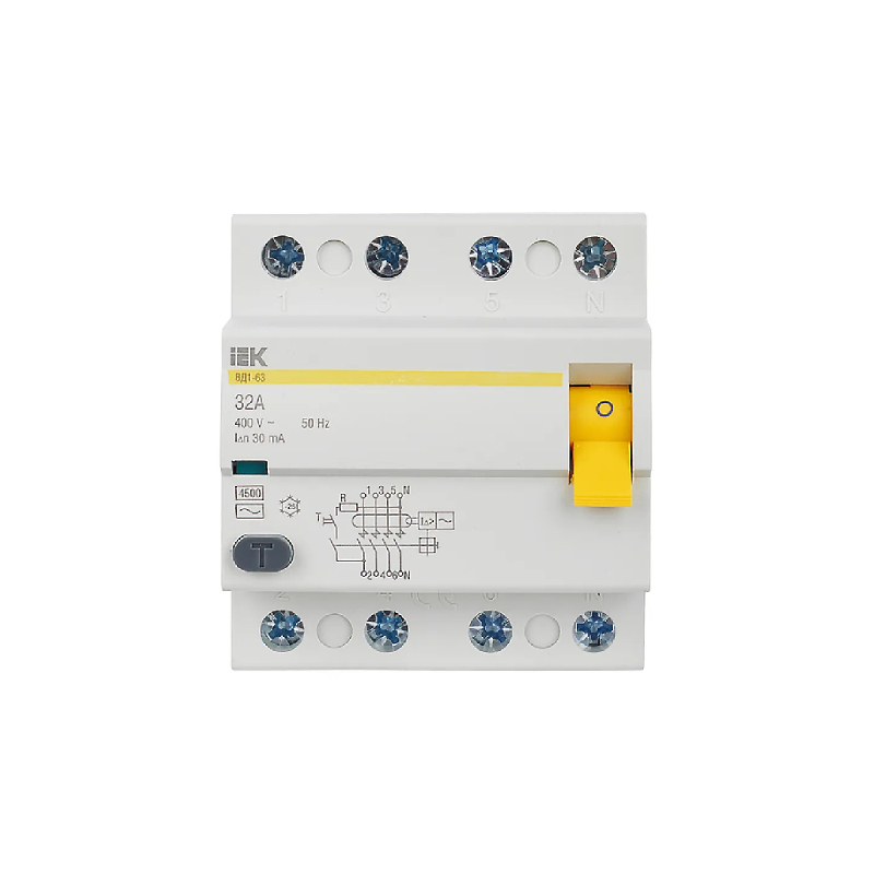 - Номинальный отключающий дифференциальный ток: 30мА
