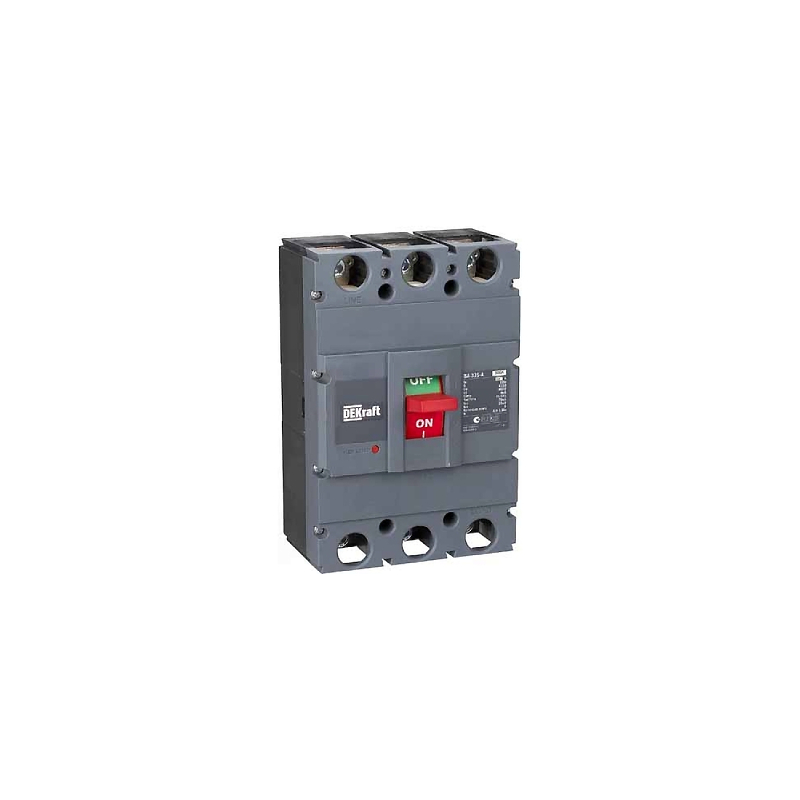 Автоматический выключатель серии ВА-334 DEKraft; 3P; номинальный ток 500 А, отключающая способность Icu = 70 кА (при 415 В 50 Гц); расцепитель and ndash; термомагнитный, регулируемый. В комплект поставки входят 4 межфазные перегородки и крепеж на монтажной плате. В дополнение к выключателям выпускается ряд аксессуаров, расширяющих их функционал: сигнальные контакты, расцепители напряжения, моторные приводы, шины выносные и др.
