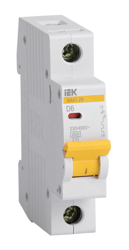 Автоматические выключатели ВА47-29 предназначены для защиты распределительных и групповых цепей, имеющих различную нагрузку: – электроприборы, освещение – выключатели с характеристикой В, – двигатели с небольшими пусковыми токами (компрессор, вентилятор) – выключатели с характеристикой C, – двигатели с большими пусковыми токами (подъемные механизмы, насосы) – выключатели с характеристикой D. Автоматические выключатели ВА47-29 рекомендуются к применению в вводно-распределительных устройствах для жилых и общественных зданий.