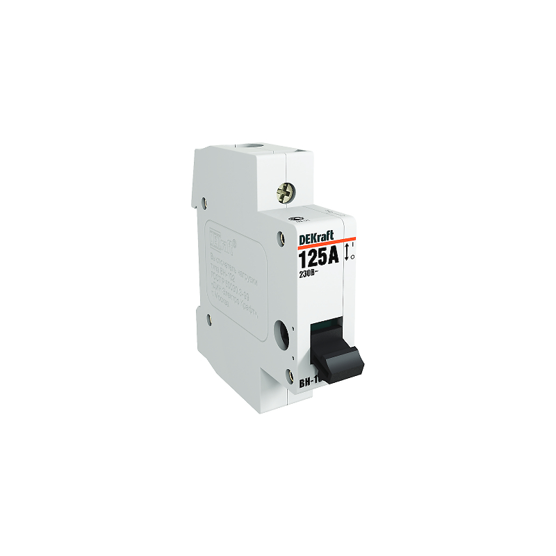 Выключатель-разъединитель серии ВН-102 DEKraft; 1P; номинальный ток 20 А; установка and ndash; на DIN-рейку; установочное положение — любое. Выключатели-разъединители применяются для ручного включения/отключения сетей напряжением до 400 В. Специальные мостиковые контакты обеспечивают надежный разрыв цепи; они полностью исключают возможность перекрытия дугой по изоляции. Усиленная рукоятка управления обеспечивает большое количество включений/отключений.